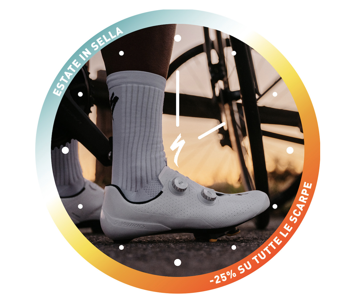 Nella settimana dall’11 al 18 giugno, nell’ambito della campagna Estate in sella, sarà possibile acquistare le scarpe Specialized a prezzi più vantaggiosi, con uno sconto del 25% su tutta la gamma, sia on-line, sia presso i rivenditori autorizzati.