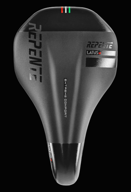 Repente Latus M è la sella full carbon per chi predilige una larghezza lievemente superiore a quella delle selle tradizionali, ma non esagerata.