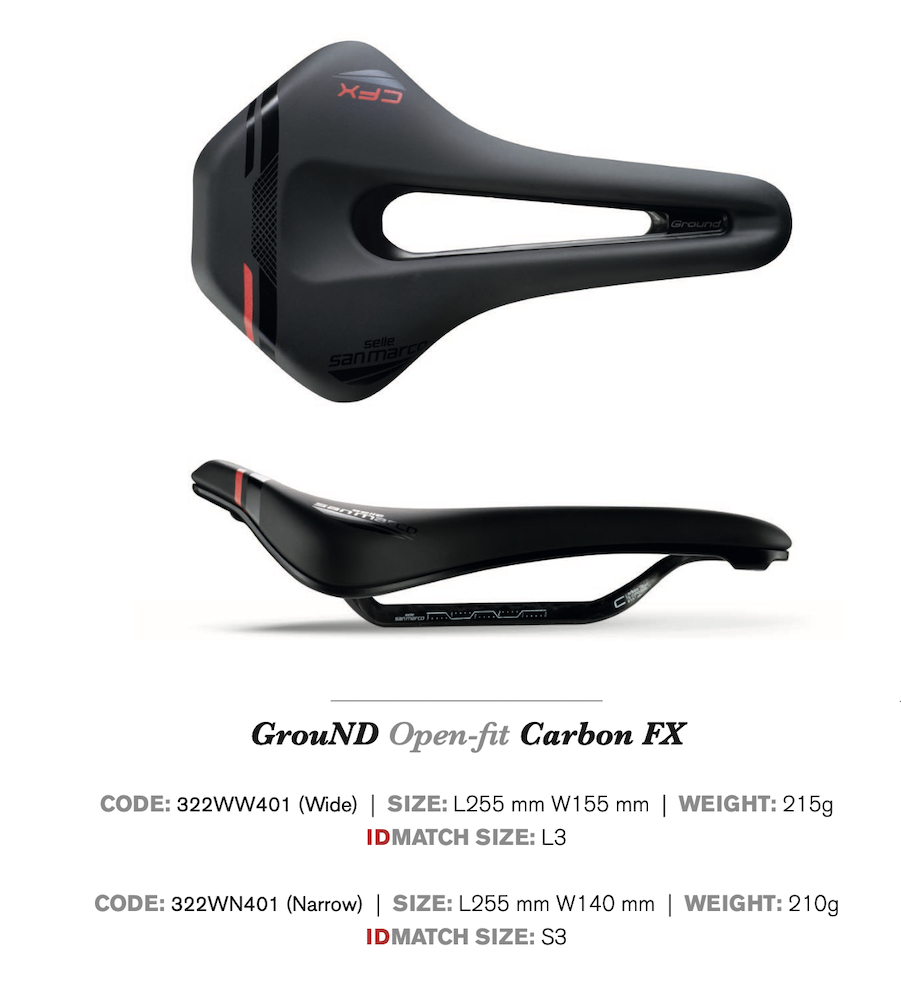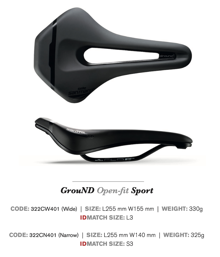 La nuova San Marco Ground è la diretta “evoluzione”, in termini di shape e di destinazione di utilizzo, dell’attuale GND. La nuova sella ha infatti una lunghezza totale di 255 mm e sarà disponibile in due misure di larghezza (Narrow 140mm – Wide 155mm) e solo nella versione Open-Fit, con un ampio foro centrale per lo scarico della pressione dalla zona perineale.