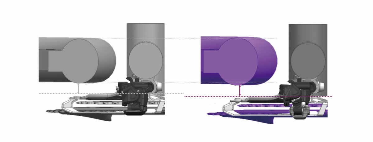 Come per le guarniture, anche i nuovi deragliatori GRX sono concepiti con uno spazio maggiorato di 2,5 mm, in modo da permettere l'uso di pneumatici fino a 42 mm di sezione.