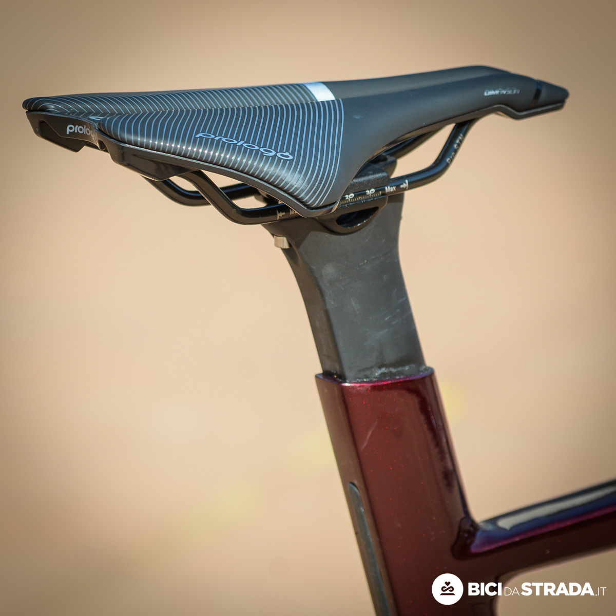 Un ciclista con statura di poco inferiore alla mia potrebbe ritrovarsi al limite se non fuori dalle specifiche indicate dalla Casa Madre. Il reggisella semi integrato (foto sotto) è stiloso, ma proprio nei casi limite diventa un'arma a doppio taglio.