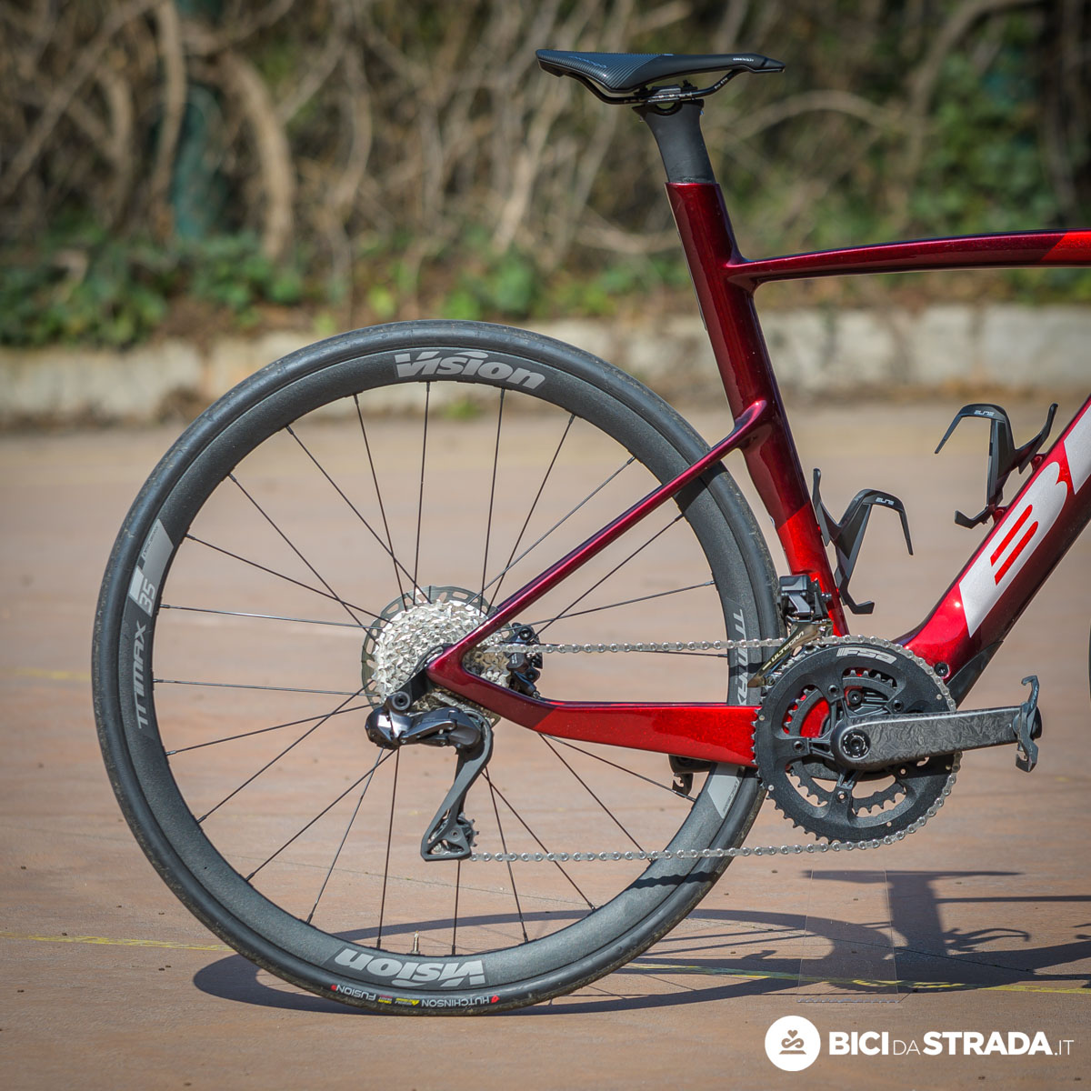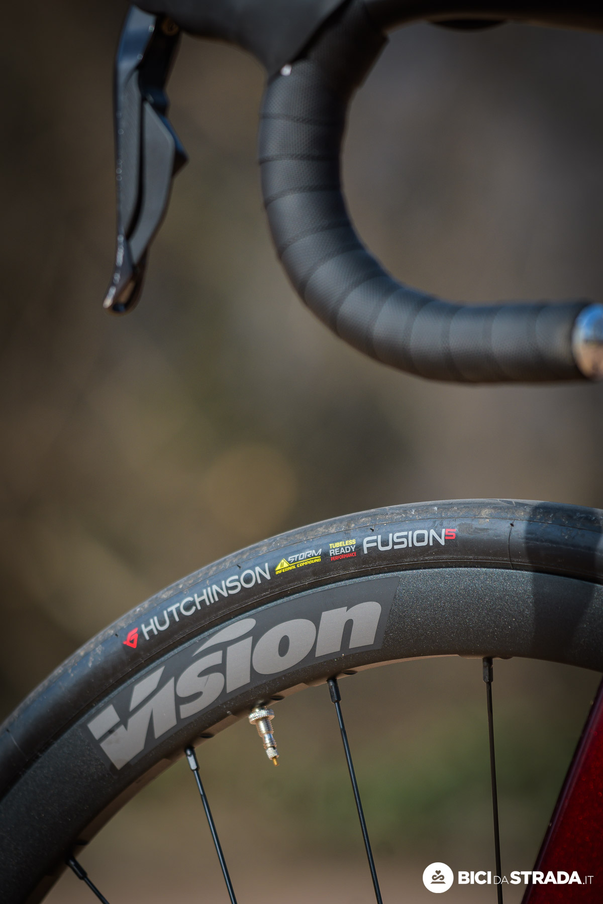 Sella Prologo Dimension 143 e ruote Vision Trimax 35 SC allestite con coperture Hutchinson Fusion 5 da 28 mm con camera d'aria.
