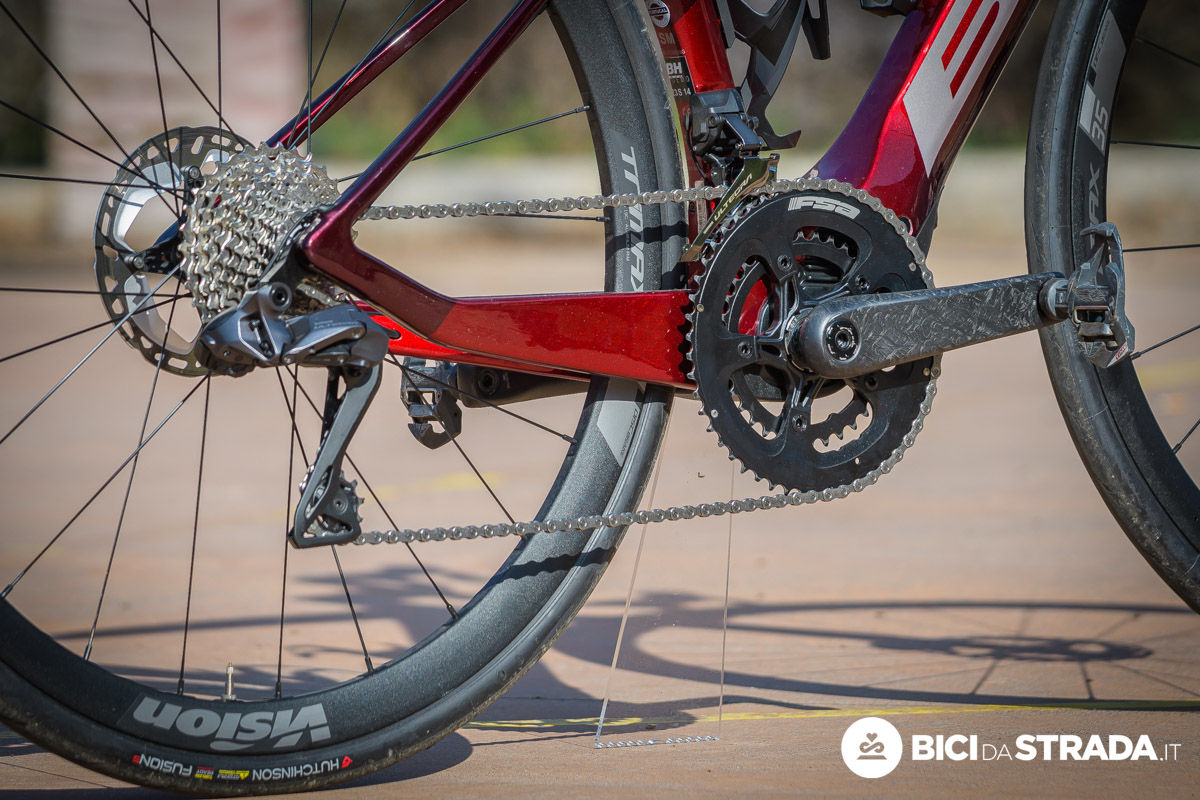 A discapito dei cinque chili in più rispetto alla bici che uso di solito posso dire che i limiti maggiori non provengono dalla struttura principale, ma dal sistema ruota. In staccata la sensazione è quella di arrivare più lunghi.