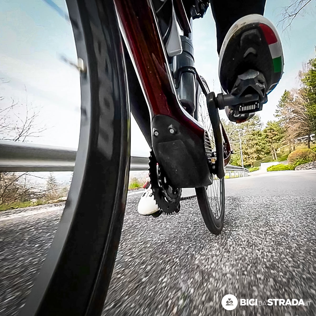 Il motore centrale comporta anche un fattore Q della guarnitura maggiore ed una sensazione diversa quando ci si alza sui pedali e si è in spinta. Io ho mantenuto la normale impostazione, ma il consiglio è quello di verificare l'assetto ed eventuali aggiustamenti delle tacchette dopo un paio di uscite.