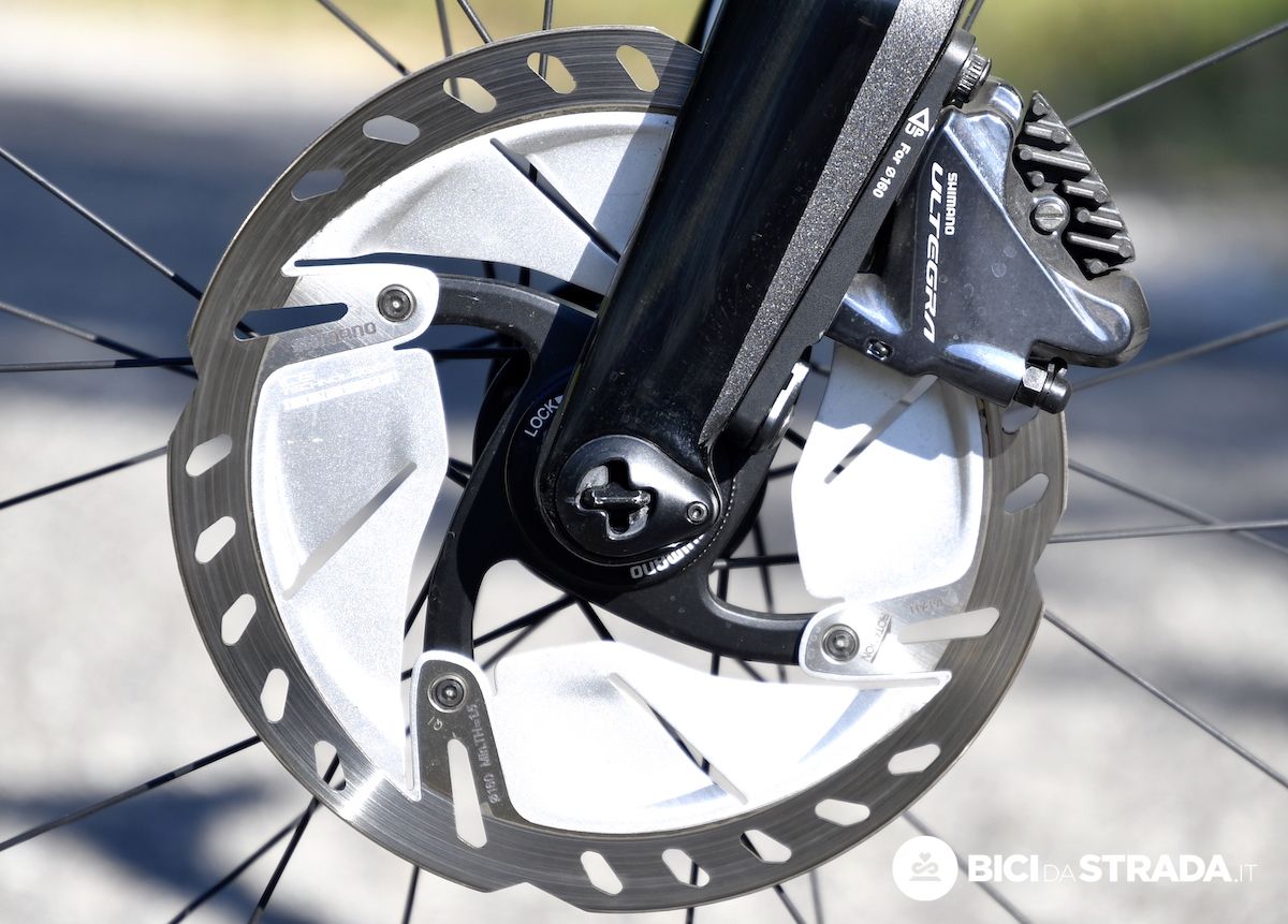 La versione utilizzata per il test è la più pregiata tra quelle in catalogo: prevede un allestimento con gruppo completo Shimano Ultegra Di2 Disc della serie R8000, che come sempre si è dimostrato preciso ed affidabile.