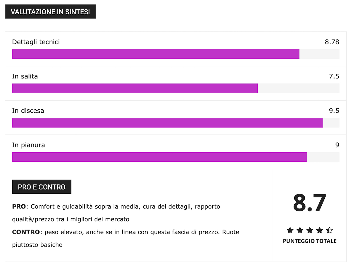 Non poco, ma in questi anni abbiamo visto bici molto più costose con pesi simili, per questo merita qualcosa in più della sufficienza.