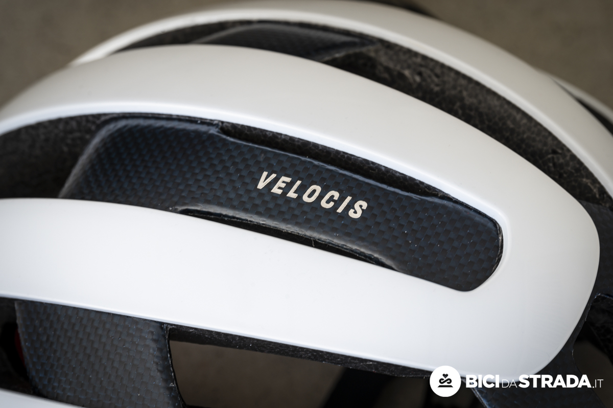 La struttura è ovviamente in EPS In-Mold, con la calotta esterna impreziosita da uno strato di carbonio OCLV. Ottimo anche il materiale usato per le imbottiture e i cinturini, che risultano morbidi e comodi anche dopo diverse ore.