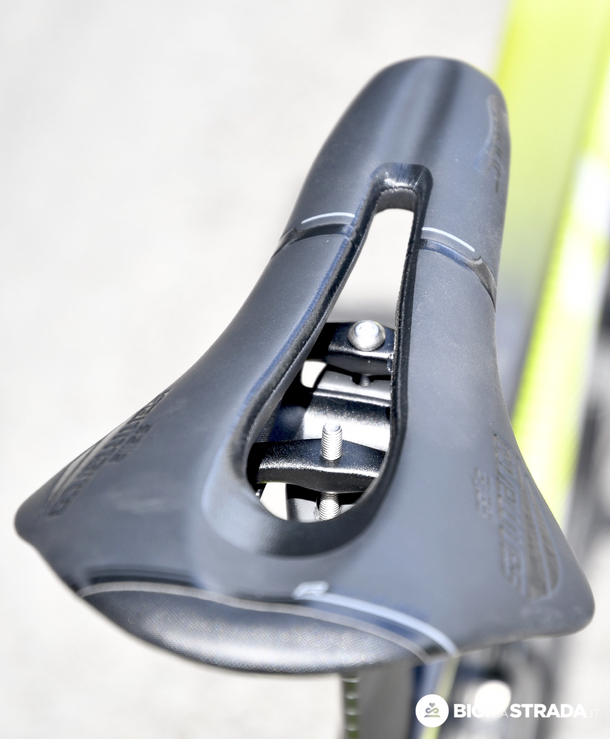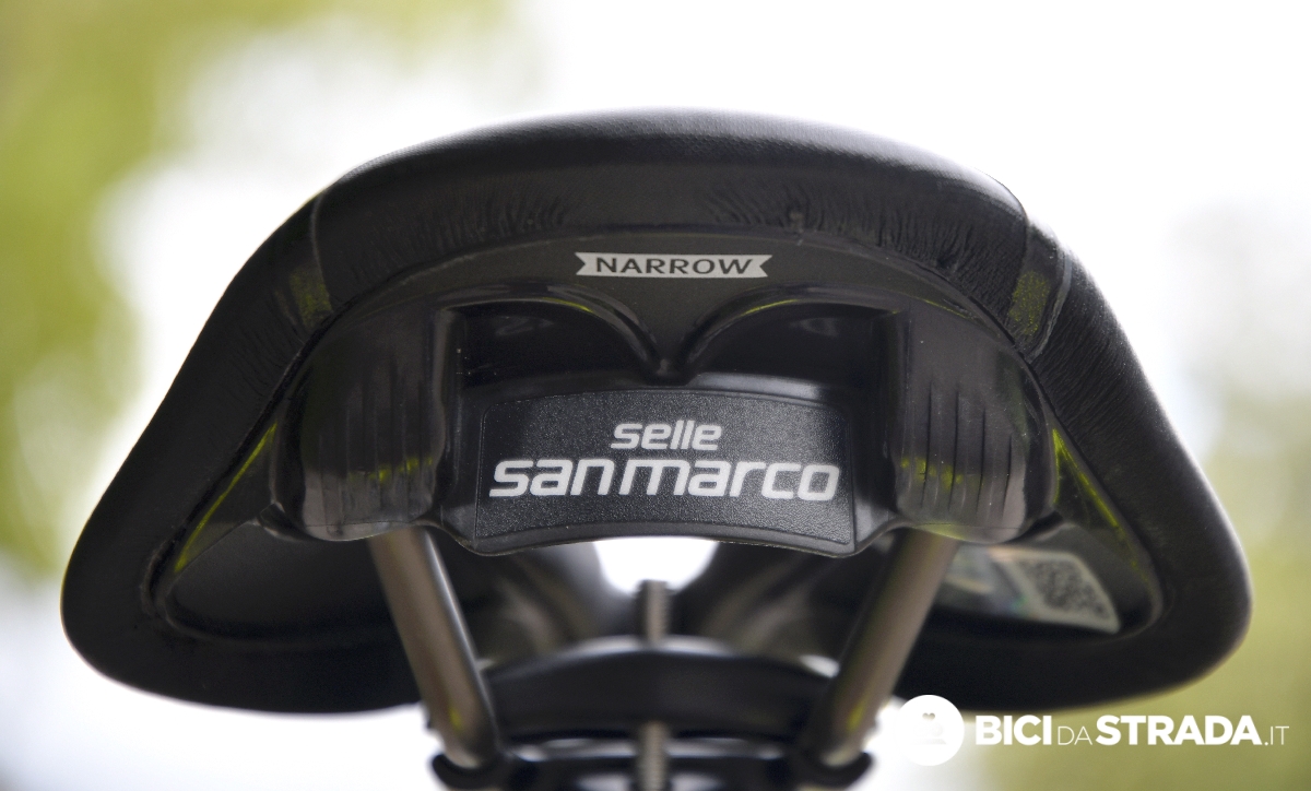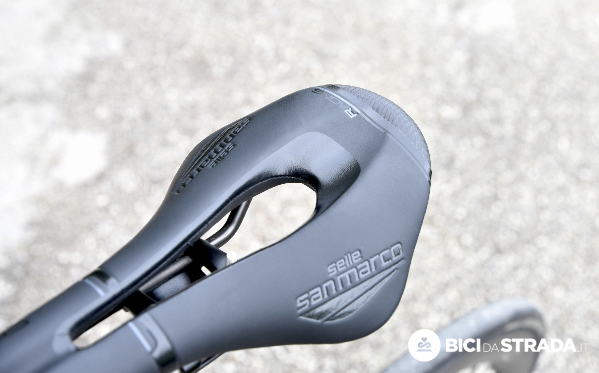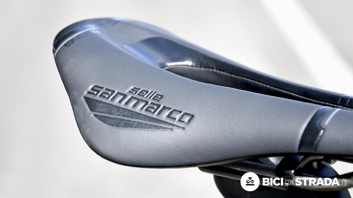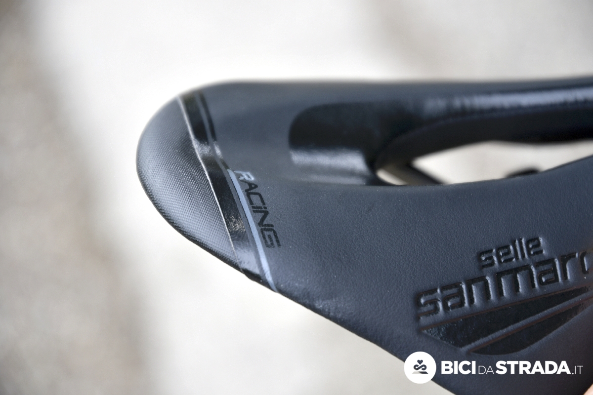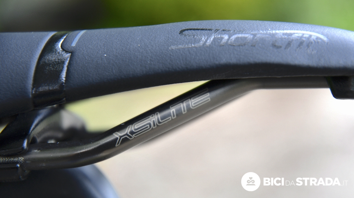 La sella utilizzata per il test è la versione Racing, cioè quella con forchetta in Xsilite, materiale con un'alta percentuale di silicio, combinato con particelle di titanio e carbonio.