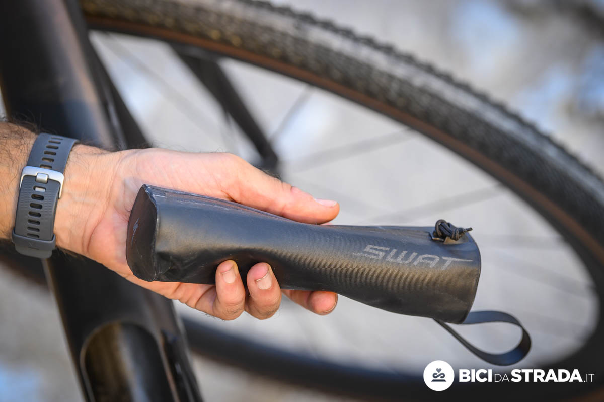 Anche in questo caso si tratta di un aggiornamento di derivazione Mtb, che permette di riporre camera d’aria, erogatore, bomboletta di CO2 (ma anche altri oggetti).