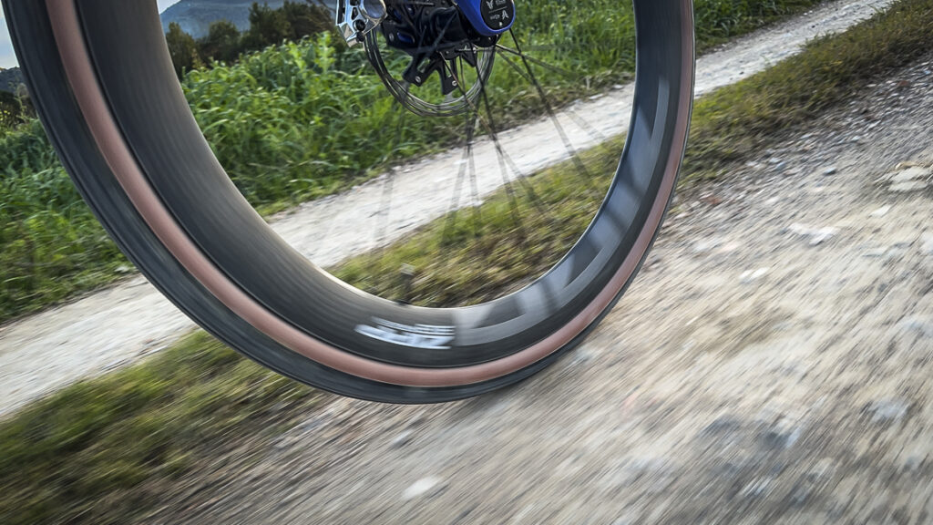 Nel caso specifico di queste Zipp 303 XPLR SW l’abbinamento tra canale largo e profilo molto alto le rende tanto specifiche. Mi viene da dire che sono eccezionali nella loro specificità, ovvero sui tratti di strada bianca e sterrato veloce, dove l’abbinamento delle due caratteristiche permette di mantenere velocità più alte del normale con meno fatica.