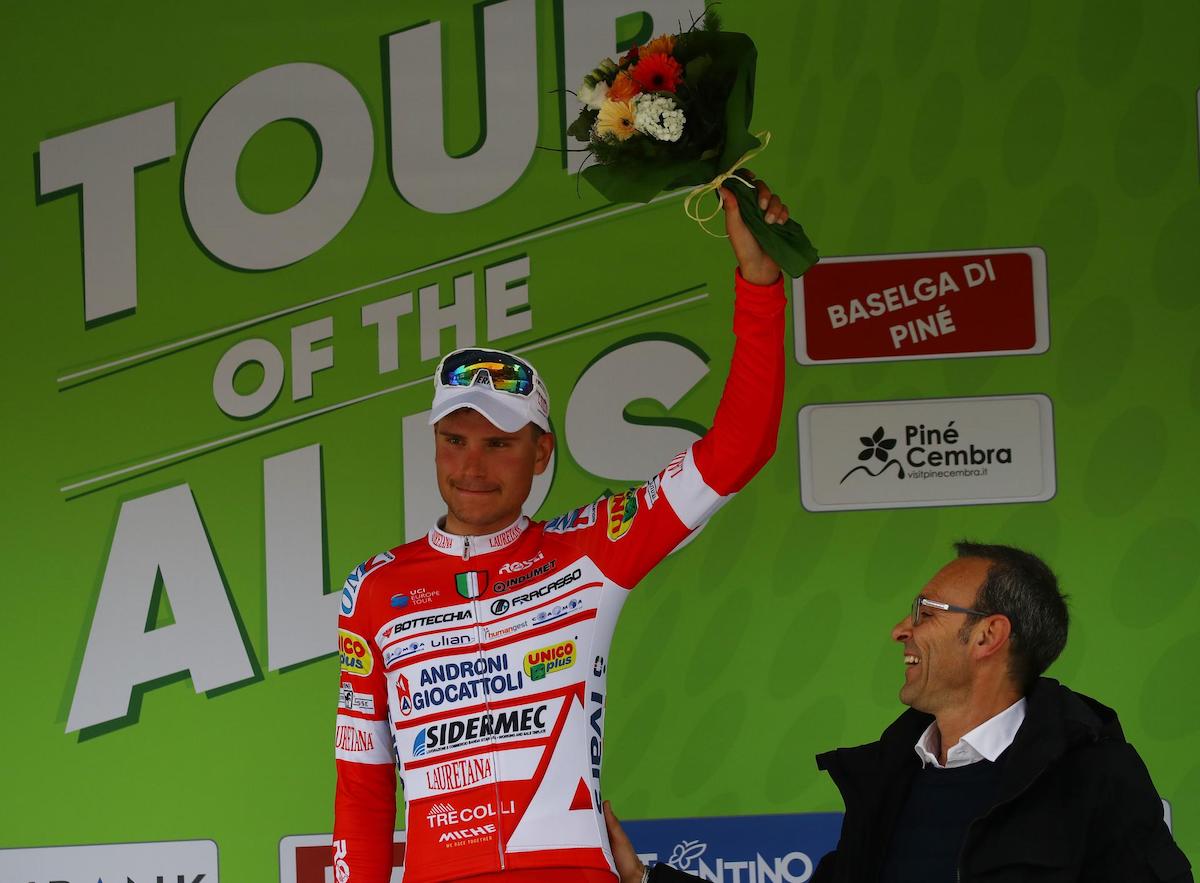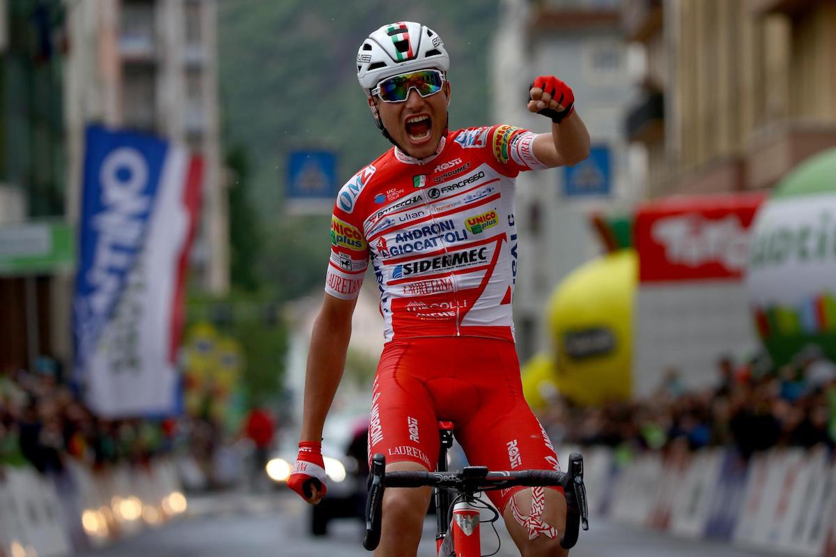 L'italiano, che già nelle scorse settimane aveva dimostrato di avere un'ottima condizione, ha sorpreso il ristretto gruppetto dei migliori con un attacco all'ultimo chilometro, arrivando sul traguardo di Baselga di Piné in solitudine, a braccia alzate.