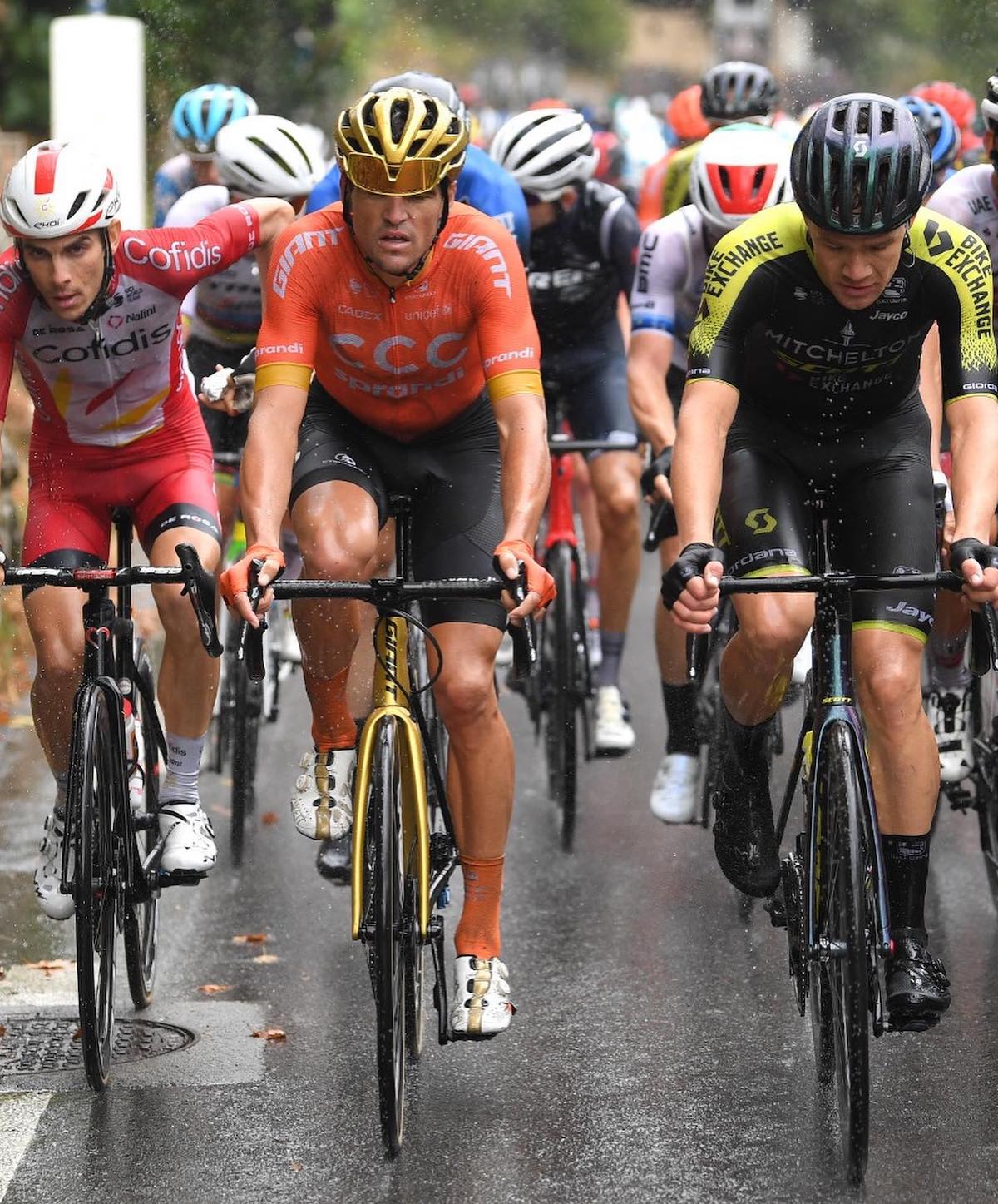 La Ridley Noah Fast del piccolo velocista australiano si distingue da quella dei compagni per una livrea nero lucida.