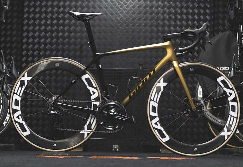 L’allestimento è completato dal gruppo Shimano Dura Ace Di2 e dalle ruote CADEX da 65 mm, in versione tubolare. Nelle tappe con parecchio dislivello, probabilmente saranno sostituite con quelle da 42 mm (QUI trovate il test della versione tubeless).