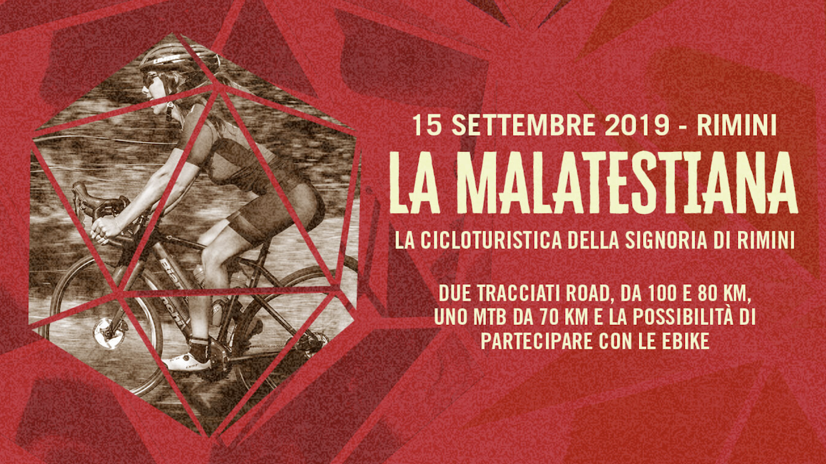 Inoltre, domenica 15 settembre, si svolgerà la prima edizione della Malatestiana, la prova cicloturistica di circa 100 km aperta a Road Bike, Mtb ed e-Bike che attraverserà gli storici territori della Signoria di Rimini in due tracciati altamente suggestivi.