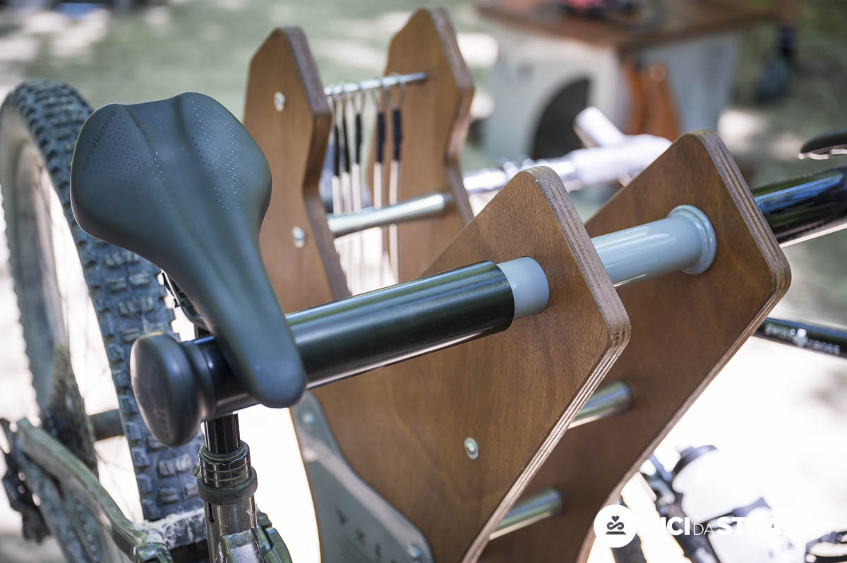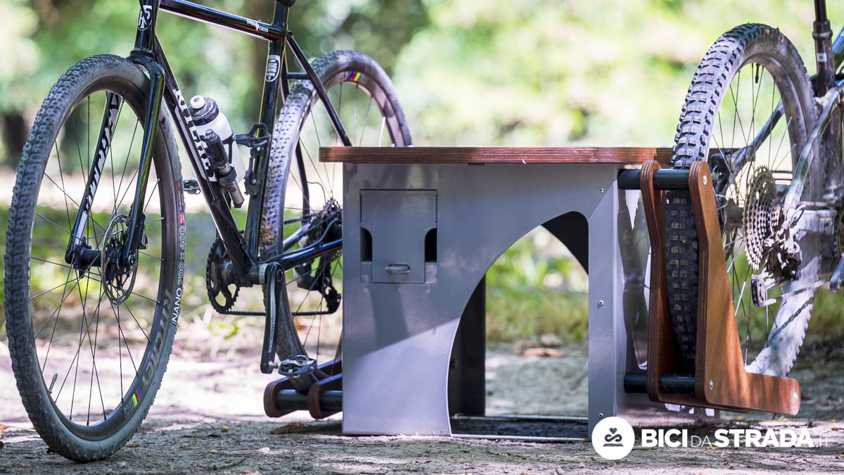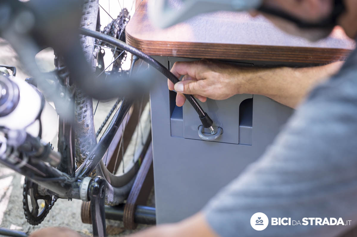 La colonnina è dotata anche di supporti per tenere sollevata la bici e operare con maggiore facilità con gli attrezzi in dotazione.