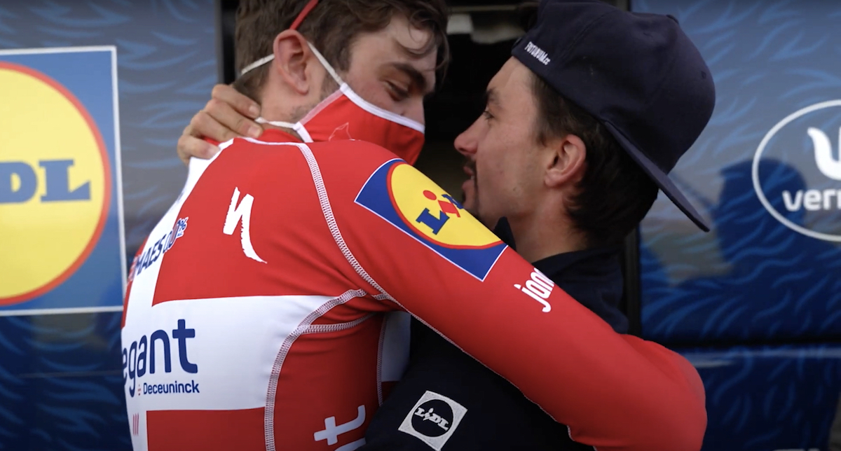 Molto bello anche l’abbraccio tra il danese e Alaphilippe al rientro in hotel, che mostra come dietro una vittoria ci sia anche il grande spirito di squadra.
