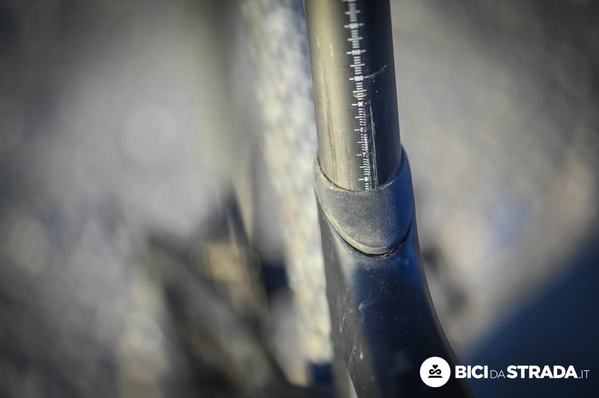 Nello specifico, in taglia M (quella utilizzata nel test) il piantone misura 47 cm, mentre il top tube misura 55 cm, con reach di 38,1 cm.