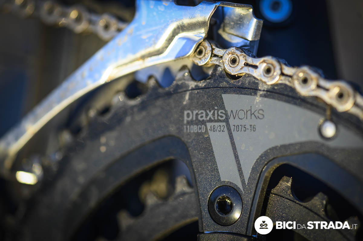 Per quanto riguarda il peso, però, sicuramente la guarnitura Praxis paga qualche grammo rispetto alla Shimano Ultegra.