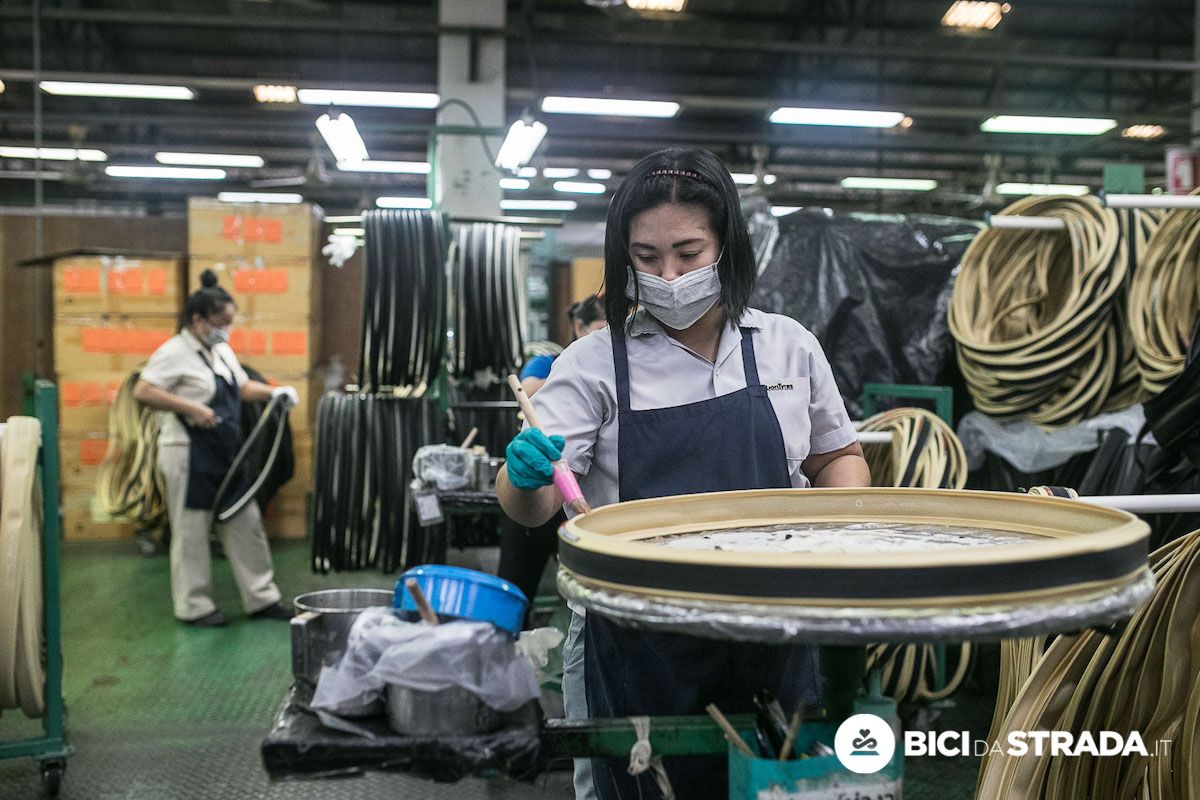 Vittoria produce 8 milioni di gomme l’anno, circa 25.000 al giorno ed è l’unico produttore di gomme per bici con la tecnologia 4c (con quattro mescole).