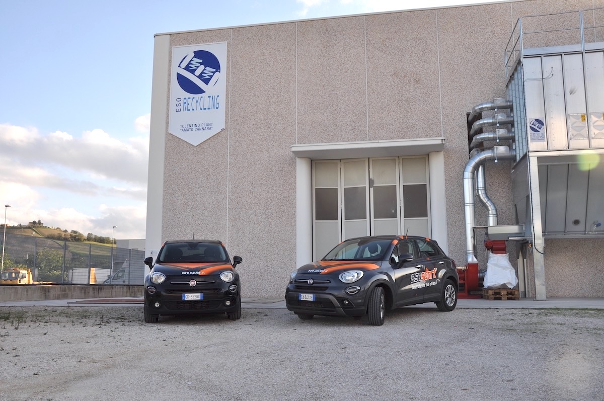 Esosport, a questo punto, conferisce tutti i materiali raccolti allo stabilimento Eso Recycling di Tolentino (Mc) dove un innovativo macchinario è in grado di trattare e trasformare pneumatici e camere in granuli.