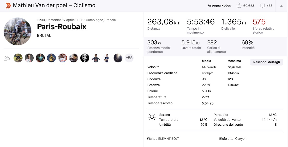 Torniamo a parlare per un attimo della Parigi-Roubaix 2022 e questa volta ci concentriamo su watt e aerodinamica.