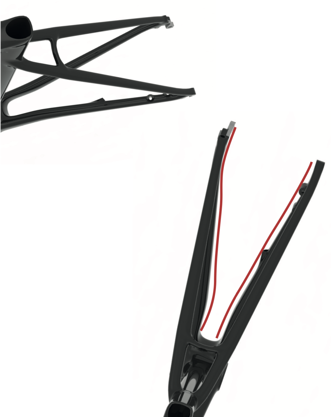 La nuova forma della forcella, insieme ad una revisione del carro, ha permesso di aumentare lo spazio per il passaggio ruota, che ora può ospitare pneumatici con sezione fino a 28 mm.