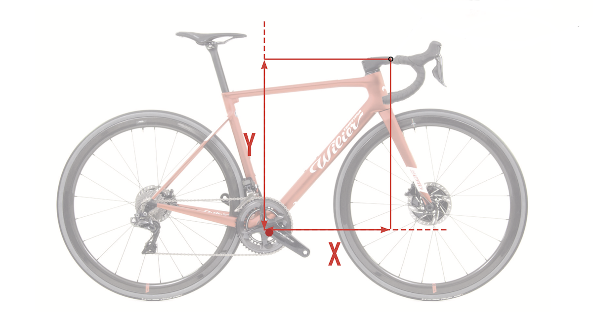 Partendo dal valore biomeccanico di distanza tra centro pedivella e centro di appoggio delle mani sul manubrio (cosiddette coordinate Accu-Fit, individuate dai valori X e Y nella foto in basso) si possono individuare diverse configurazioni date dalla combinazione di telaio (6 taglie disponibili), manubrio (5 taglie disponibili) e distanziali (7 configurazioni possibili) al fine di interpretare al meglio le esigenze di ogni ciclista.